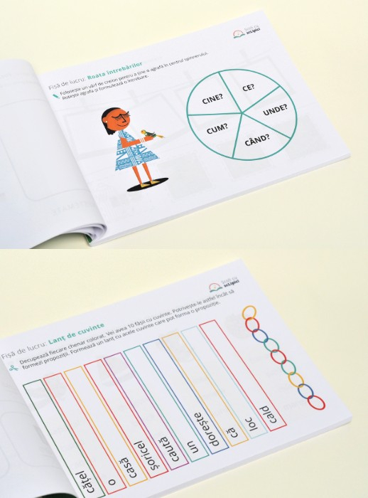Caietul și cărțile sunt concepute să funcționeze împreună: poveștile aduc contextul viu, iar caietul transformă lectura în activități practice și atractive.